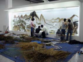 If we read the visible forms in Xu Bing’s works through François Jullien’s analysis of the configurations within the totality of the frame, we would see only misty rivers and layered ridges on the surface of the panel, consumable objects produced through the tobacco industry, and the beautiful phoenix from ancient Chinese mythology. We could not see the “background stories” Xu Bing wanted to draw our attention to. The backgrounds of the forms in these stories, Xu Bing apparently wanted to show, are interwoven with physical trajectories, temporal processes and manual labors, combined with layers of local and global histories. Through the political uses of the bodies and the forms, as what we’ve seen in XU Bing’s Background Story : Misty Rivers and Layered Ridges, Tobacco Project and Phoenix, Xu Bing unveil the ironic logic of the capitalist development that rooted its effect in contemporary Chinese society. The consumed objects, such as the tobacco, the rusted tire rims, steel saws and scoops, iron barrels, screwdrivers and safety helmets used by the migrant workers at the construction site for the new World Financial Center in Beijing, demonstrated the first cycle of use and exposed the forms of life shaped by the law behind the objects. Through the second cycle of artistic consumption, however, not only the law of separation is exposed, but the old use of bodies is also deactivated, and we see a re-configured form of life and renewed use of the bodies through Xu Bing’s artistic labor. These bodies are linked both with the past lives in history and with Xu Bing as an artist.