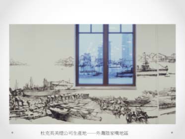In Tobacco Project : Shanghai exhibited in 2004, for example, the juxtaposition of the skyscrapers at the Bund (外灘) with the photos of the old tobacco factory at the harbor a century ago was striking. The Bund was the waterfront area in central Shanghai where packs of big mansions of international trading companies gathered from mid-19th century, after Shanghai was forced to open itself to international trade as one of the five treaty ports, besides granting Great Britain extraterritoriality and the cession of Hong Kong Island, dictated by the Treaty of Nanjing in 1842 upon the failure of the first Opium Wars, also named as Anglo-Chinese War, in 1839-1842. It is the symbolic historical moment when China launched into the path of modernity. Today, the Bund is also crowded with high-rise buildings of international banks and business centers. The rapid growth of the highly invested financial center and the soaring tall buildings drastically altered the landscape of Shanghai. The traces of the socialist past and its postponed development during the socialist era in the middle of the twentieth century were almost entirely erased. Instead, China has re-emerged within the past decade and caught up with the rest of the world with tremendous will and speed and the progress of modernity has been seamlessly sutured.