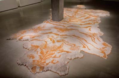The second series of artwork that can help us understand further the double cycle of the artistic labor is Xu Bing’s Tobacco Project 1999-2011 : 1st Class. This installation, size approximately 1500 x 600 cm, irst exhibited in Virginia in 2011, was also exhibited in Taipei Fine Art Museum in 2014. The shape of this piece looks like a tiger-skin rug, but is composed of over 500,000 cigarettes, with the aroma of tobacco permeating the entire space of the exhibition hall. Xu Bing’s Tobacco Project 1999-2011 originated from his visit to the tobacco factory in Durham, North Caroline, during his trip to Duke University in 1999. Duke family in fact established the British-American Tobacco Company in Shanghai in the beginning of the twentieth century and was the first company that introduced the tobacco-rolling technology into China. Over the past years, Xu Bing has explored different aspects of the uses of tobacco and its complicated relations with Chinese societies and histories in different exhibitions, such as Tobacco Project : Shanghai, Pipe, Little Redbook, Chinese Spirit, Tobacco Book, Backbone and 1st Class.